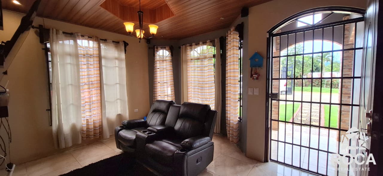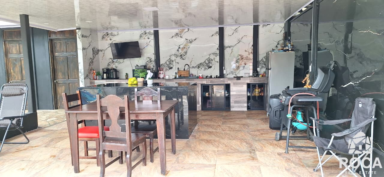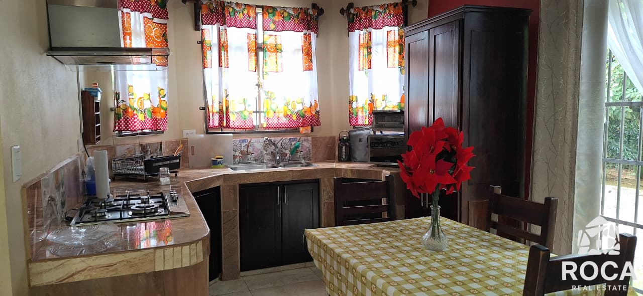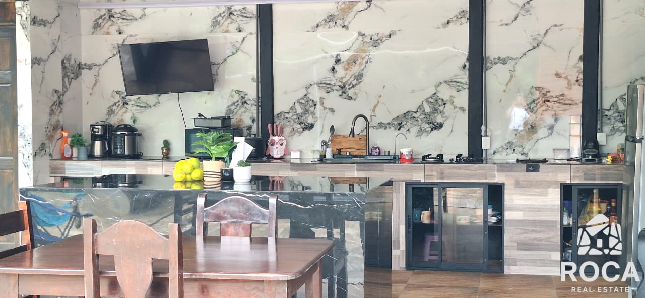 The house is built in cement, which gives it great solidity, and has beautiful finishes that highlight its quality. In addition, it has security cameras for your peace of mind and access through an electric gate.