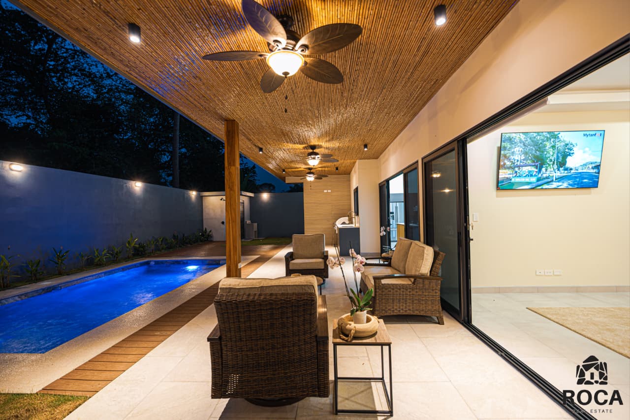 This tropical modern villa offers an effortless coastal lifestyle designed for both relaxation and entertaining. Wake up to ocean breezes, enjoy sun-filled days by your private pool, and take leisurely walks to the beach just minutes away. The seamless indoor-outdoor design creates an ideal environment for hosting family and friends, while the single-level layout ensures comfort and accessibility. Whether used as a primary residence, vacation getaway, or luxury rental investment, this home delivers the perfect balance of modern elegance, privacy, and connection to Costa Rica’s natural beauty.