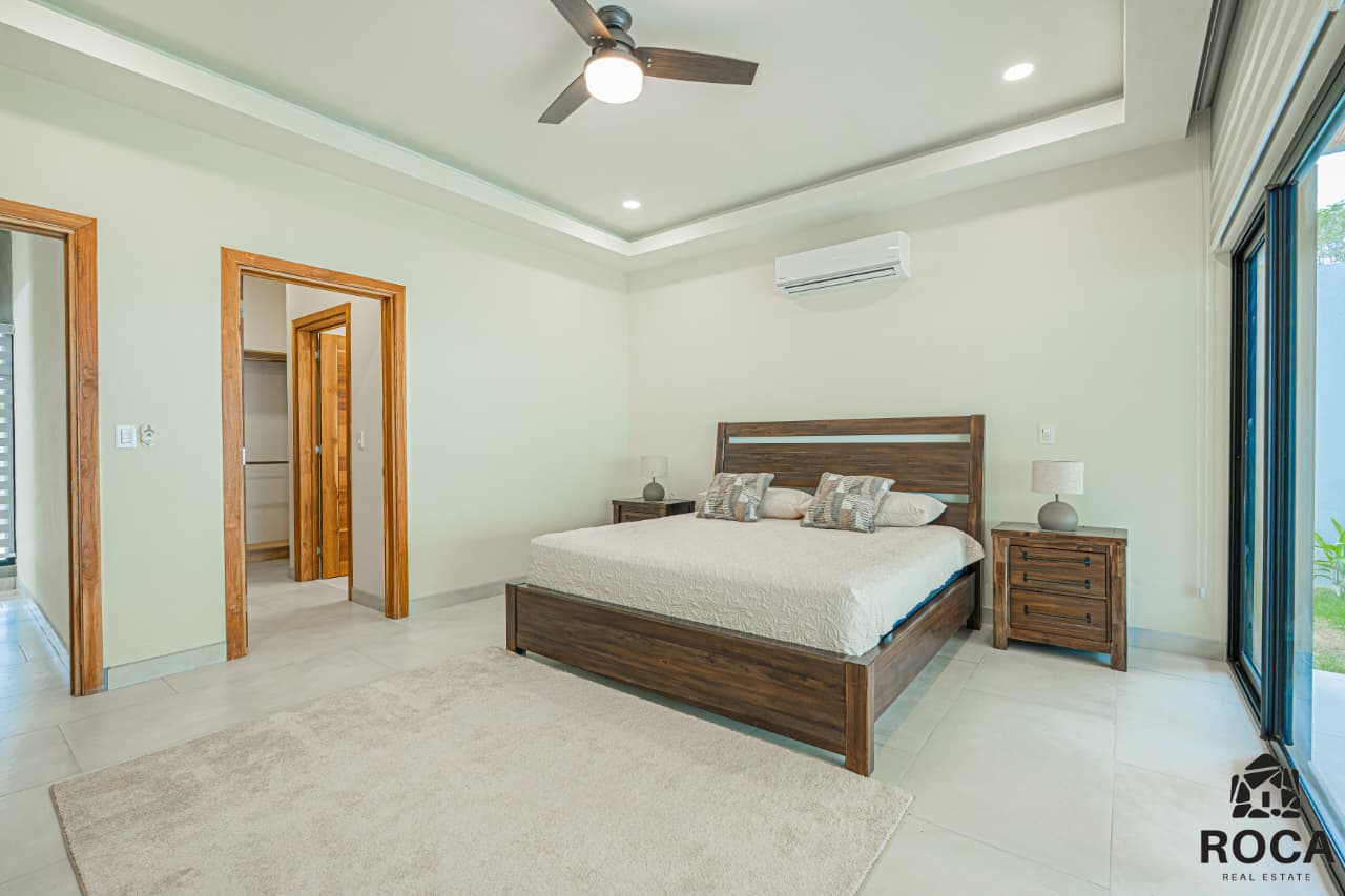 This newly completed tropical modern villa represents a refined expression of contemporary living in one of Costa Rica’s most desirable coastal settings. Thoughtfully designed and finished in 2025, the residence is ideally situated within walking distance to the beach, offering an exceptional balance of privacy, comfort, and effortless coastal lifestyle.